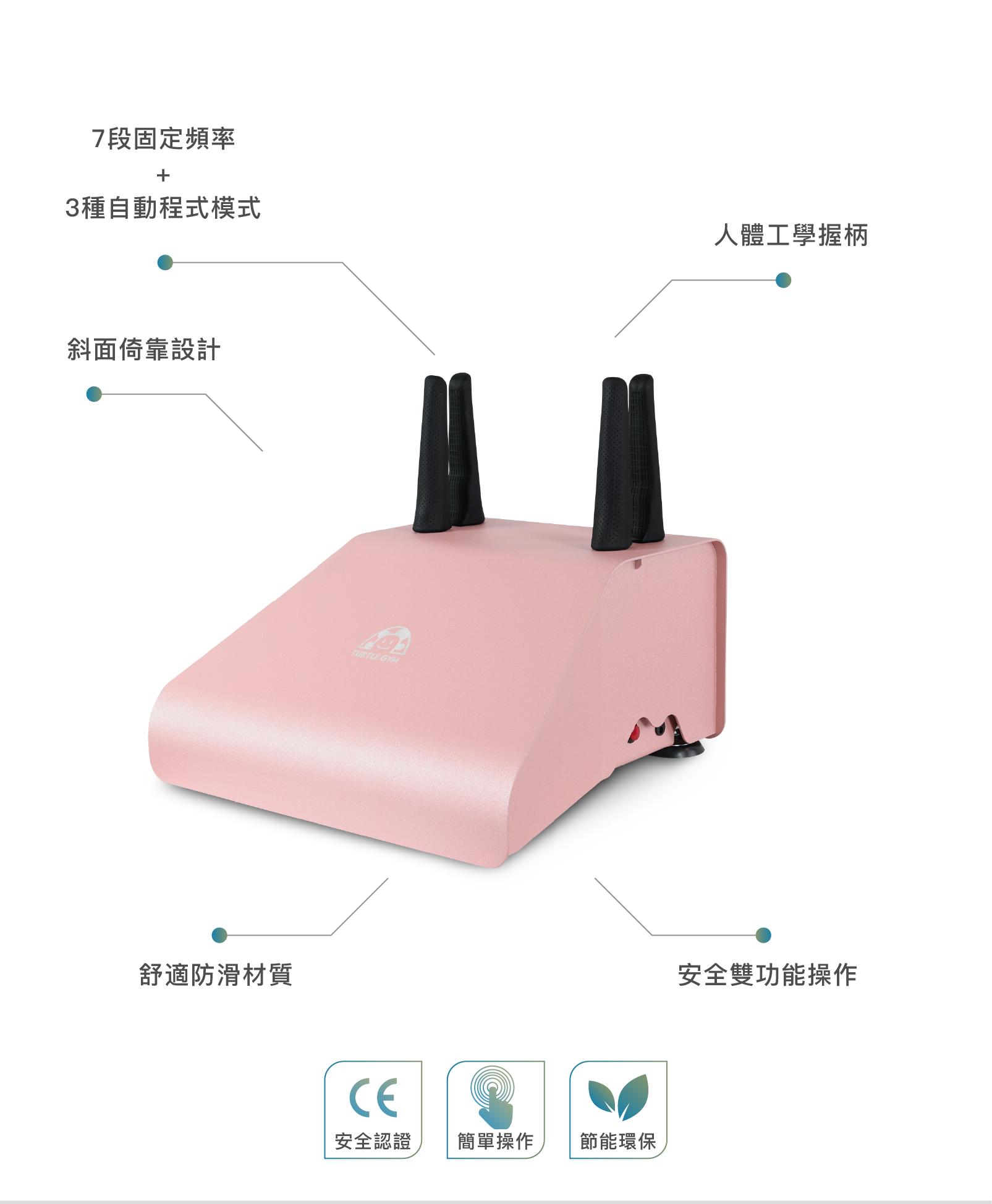 ▲新型斜面倚靠設計,讓手掌運動時倚靠更服貼。