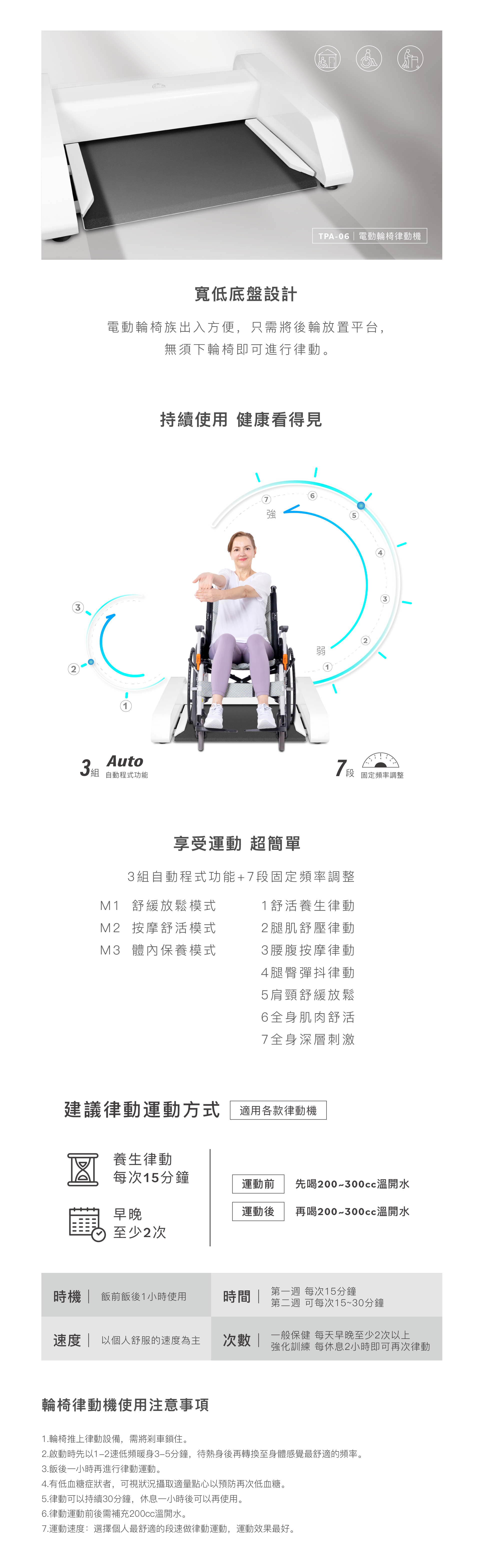●7段固定頻率+3種自動程式模式,隨時調整最合適的速度